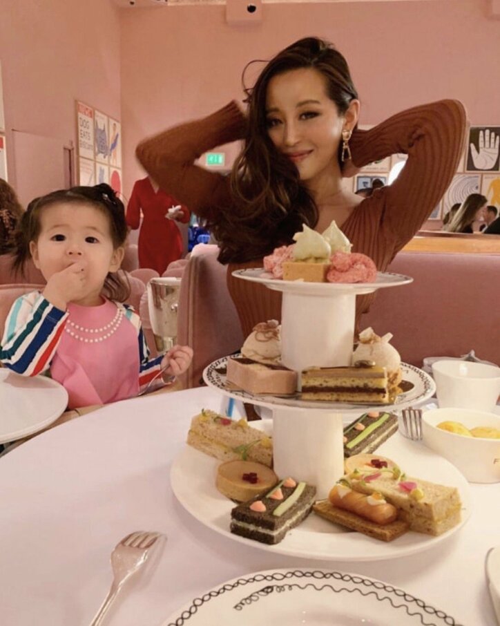現在ロンドンに滞在中のPINKYはこの日「Afternoon tea at Sketch london」とロンドンのカフェでアフタヌーンティーを楽しんだことを明かし、娘と自身との2ショットを続々と公開した。