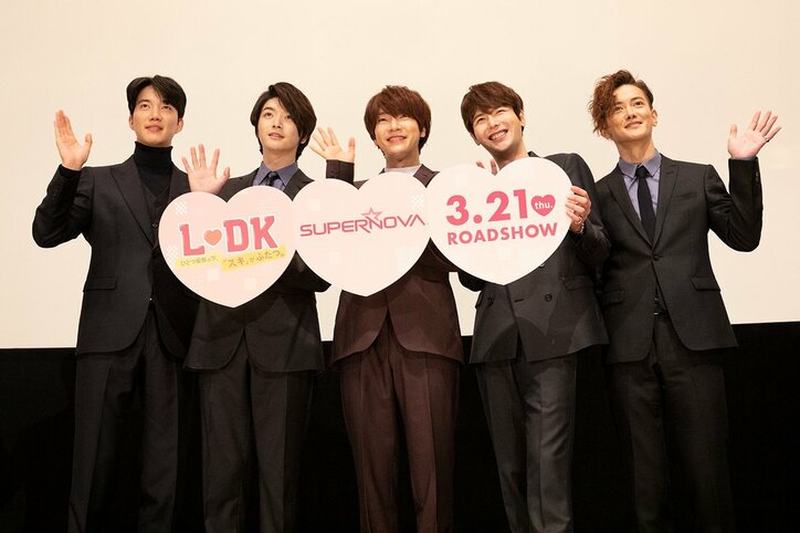 日本デビュー10周年のSUPERNOVA、トークが冴えわたり爆笑の渦 2019/10/24 20:39 拡大する 17日、韓国出身のダンス・ボーカルグループ「SUPERNOVA」(昨年、超新星から改名)が、映画「L・DK ひとつ屋根の下、『スキ』がふたつ。」の舞台あいさつを行った。 SUPERNOVA(スーパーノヴァ)は今作で、挿入歌「Everytime」を担当。オファーされた際には「(原作である)日本の少女マンガは、凄く人気で"ピュアなラブストーリー"」と印象を振り返り、書き下ろした楽曲については「初めてのバラード曲。ドキドキする毎日を想像しながら歌わせてもらいました」と携わった思いを告げている。 続きを読む