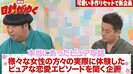 「ピュアな話、良いよね!本当に甘酸っぱいのが聞きたい」と喜ぶ日村に、「もうグロいのとかはね…」と井戸田も同調。日村も「この番組はグロいの多いから!いらないから」と普段から下ネタが多いこの番組に苦言を呈するも、トップバッターでセクシー女優の七海ティナが登場したことで、徐々に雲行きが怪しくなっていく…。さらに七海さんは井戸田に近づき、お得意の「耳元プレイ」を実戦。果たして井戸田の反応は?