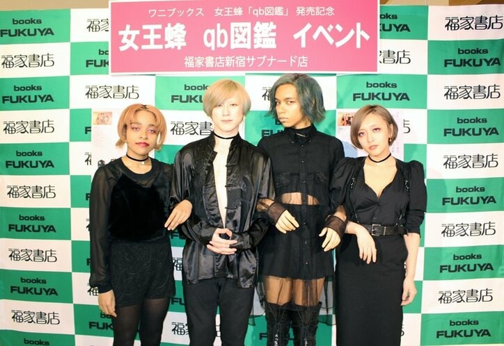 女王蜂初の書籍『qb図鑑』発売!アヴちゃんインタビュー 2019/10/24 20:39 拡大する 7日、福家書店サブナード新宿店にて女王蜂初の書籍『qb図鑑』発売記念イベントが開催された(前日、6日に紀伊國屋書店グランフロント大阪店でイベントを開催)。一部では、抽選で選ばれた方限定でメンバーとのチェキ撮影会、二部は、書籍のお渡し会が行なわれた。 イベントが始まると、間近で女王蜂メンバー4人に会えるということで、何も言えなくなってしまうファンや、感極まって思わず泣いてしまうファンも多くいた。ライブ以外で、ファンと顔を合わせる場があまりないメンバーにとっても、書店でのイベントは全て初めての経験。好きですという気持ちを伝えてくれるファン一人ひとりに、「ありがとうございます」と、感謝の気持ちを伝え、とても温かいイベントとなった。 続きを読む