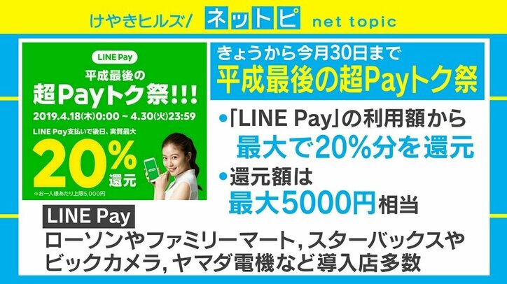 プロが教える「LINE Pay」キャンペーンの“お得な使い方” 2019/10/24 11:11 拡大する LINE Payの「平成最後の超Payトク祭」が18日からスタートした。 このキャンペーンは、LINE Payの利用額から最大で20%を還元するもの(還元額は最大5000円相当)。ローソンやファミリーマート、スターバックス、ビックカメラなど、導入している店は多い。 さらに、キャンペーンと合わせて決済サービスに特化した新アプリ「LINE Pay」も登場した(Android版のみ、iOS版は近日中に配信)。アプリでは、LINE Payを使える店が地図上に表示されるほか、30万円未満の決済時にはパスワードの入力が不要。さらに、アプリをキャンペーン期間中の支払いに利用すると、還元額が2倍の最大1万円相当にUPする。 続きを読む