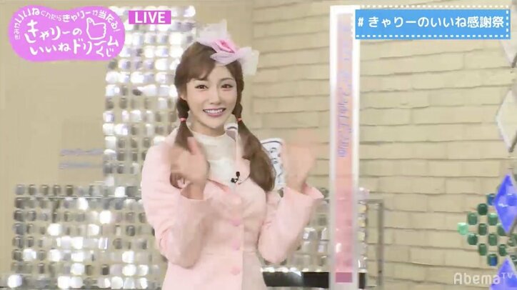 明日花キララ、本人の衣装着て”きゃりーぱみゅぱみゅ”完コピ 2019/05/16 15:15 拡大する 5月16日に放送されたきゃりーぱみゅぱみゅの特番『きみがいいねくれたらきゃりーが当たる!きゃりーのいいねドリームくじ!』(AbemaTV)に明日花キララが登場。きゃりーとともに『きみがいいねくれたら』の振り付けを披露した。 きゃりーと明日花は仲のいい友人関係で、明日花は5月12日に自身のTwitterで「きゃりたんと一緒に踊りたいなぁ.. #きゃりーが当たるいいねドリームくじ」と投稿。そんな願いを実現させるべく明日花はこの日、『きみがいいねくれたら』のMVできゃりー本人が着用した衣装に身を包み登場した。なお、きゃりーと明日花が番組で共演するのは今回が初めて。 続きを読む