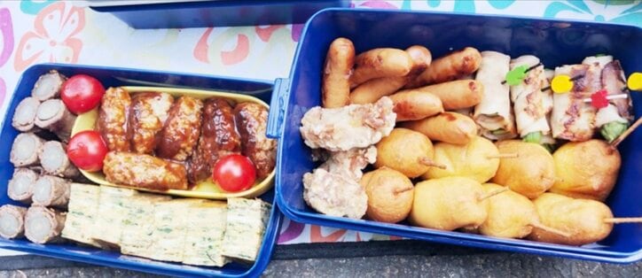 ギャル曽根、苦戦した運動会の弁当「おにぎりは30個くらい握りました」 2019/05/30 18:11 拡大する タレントのギャル曽根が29日に更新した自身のアメブロで、運動会の弁当作りに苦戦したことを報告した。 ギャル曽根は「運動会のお弁当は、詰めるのに苦戦しました」と明かし、息子からは「玉子焼きとウインナー」夫からは「アスパラベーコンとポテトサラダ」、娘からは「ごぼうの肉巻きに唐揚げ」とそれぞれリクエストがあったことを説明。「きんぴらも作りましたが、スペースがなく入らず」と完成したお弁当の写真を公開した。 続きを読む