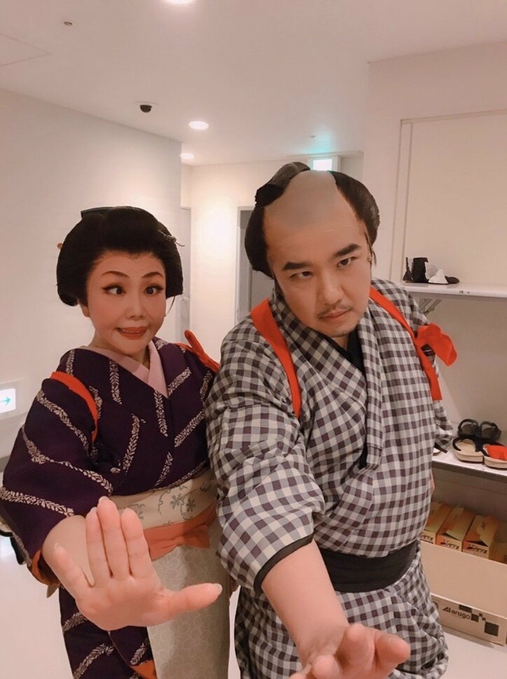 小川菜摘、インパルス・堤下と一緒に見得切りの練習「寄り目し過ぎて頭痛いわっ」 2019/05/31 13:34 拡大する タレントの小川菜摘が29日に更新した自身のアメブロで、お笑いコンビ・インパルスの堤下敦と一緒に「見得切り」の練習をしている様子を公開した。 現在、舞台『赤と黒 サムライ・魂』に出演中の小川は、この日「インパルス堤下君が芝居の中で見得切りの仕草を入れようと練習していたので、一緒に練習してみた」と、舞台で共演中の堤下と見得を切るポーズの2ショットを公開。 さらに、自身が見得を切るポーズの写真を続けて公開し、「何だコレ、笑笑」と楽しそうにコメント。また、「それを観ていた合田雅吏君も参加、、、」と俳優の合田雅吏を交え、ポーズを決めている3ショットを公開。 続きを読む