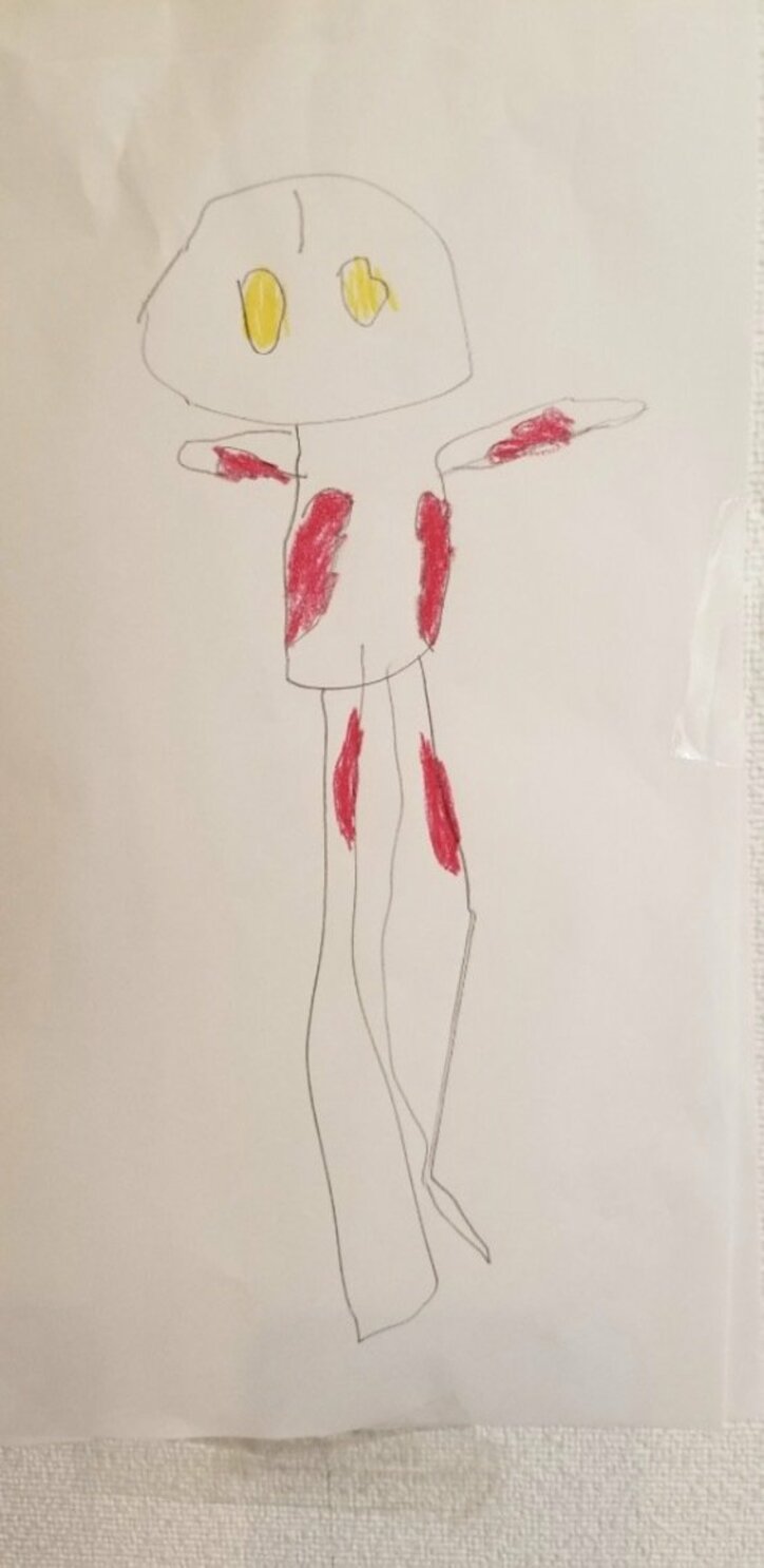 小原は「もう すでにとっても上手に人物などを描けるお友達も いますが 誠希千は まだまだかわいらしい絵です」と誠希千くんが描いた絵を公開。「4才3ヶ月 の 誠希千が描いたウルトラマン 聞かなくてもウルトラマンって 分かりました この成長に感動」と感慨深げな様子。