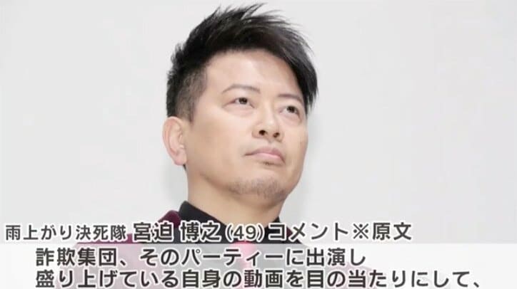 宮迫博之ら吉本芸人11人「活動停止」テレビ局各社が対応に追われる 2019/10/28 11:00 拡大する 特殊詐欺グループとされる反社会的勢力主催の会合に、事務所に黙って参加し報酬を受けとる「闇営業」の問題で謹慎処分となった雨上がり決死隊の宮迫博之(49)、ロンドンブーツ1号2号の田村亮(47)らが出演する番組について、テレビ局各社が今後の対応について発表した。 雨上がり決死隊の冠番組『アメトーーク!』、ロンドンブーツの冠番組『ロンドンハーツ』を放送するテレビ朝日は「当該出演者に関しましては、今後の出演を見合わせることに致します」「また、収録済みの番組につきましては、対応を慎重に検討しております」とコメント。また日本テレビは、宮迫がレギュラー出演する『行列のできる法律相談所』について7月7日、14日に放送予定分が収録済みだとした上で宮迫の出演シーンはカットするなど、「可能な限り配慮して放送いたします」と発表している。 続きを読む