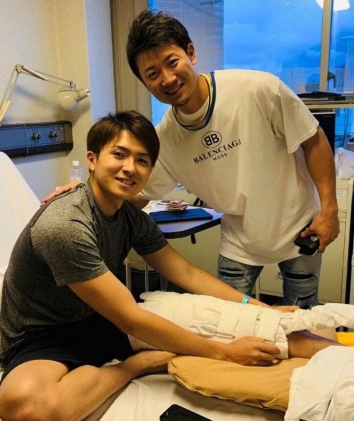 日ハム・西川遥輝選手、上沢直之投手のお見舞いへ ファンから安堵の声も 2019/06/26 16:18 拡大する 北海道日本ハムファイターズの西川遥輝選手が25日に自身のアメブロを更新。同球団に所属する上沢直之投手のお見舞いに訪れたことを報告した。 上沢投手は2019年6月18日に神奈川・横浜スタジアムで行われた横浜DeNAベイスターズ戦に先発出場。6回にネフタリ・ソト選手の打球が左膝に直撃し、左膝蓋骨骨折と診断されていた。 西川は「昨日、みなさんが心配している上沢選手の顔をのぞいてきました!元気な顔をしていてよかった!」と、病室での笑顔の2ショットを公開。しかし一方で「相当悔しいだろうが…」と上沢投手の胸中を察するも、「でも もうリハビリも始めていて前を向いていました!」と説明した。 続きを読む