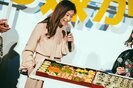まず、「本当に昨日の夜は眠れないほど緊張しちゃったんですが、今日皆さんと会えると思うと元気が出てきて、本当に元気をくれると作品だと思います!」と本作の門出を心から喜んだのは主演の篠原。kaori(ttkk)さんのすごいと思うところを聞かれると「やっぱり3年間毎日、キャラクターとユニークなメッセージ入りのお弁当を作っていたことですね。他の仕事をしながらやっていた忍耐力に、同じ母としても尊敬します。とくに貞子弁当とか。あのお弁当が一番好きなんです!」との回答。
