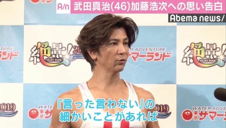 武田真治、去就が注目される加藤浩次への思いを語る「変わるべきところは変わって頂いて」 2019/07/27 15:03 拡大する 東京サマーランドの夏開きイベントが26日行われ、CMキャラクターを務める俳優の武田真治が登場した。 この日、筋肉を強調したタンクトップ姿を披露した武田。あまりにも独特すぎる衣装について「司会の方から『着心地は?』と質問されて…伸縮性・撥水性も優れていてと答えた」「あんなに、スベるんですね 興味ないですよね」と、戸惑った様子を見せていた。 武田は、吉本問題で渦中にいる極楽とんぼの加藤浩次と長年番組で共演しており、その去就について「変わるべきところは変わって頂いて『言った言わない』の細かいことがあれば、サマーランドで水に流して」と語り、周囲の笑いを誘っていた。 続きを読む
