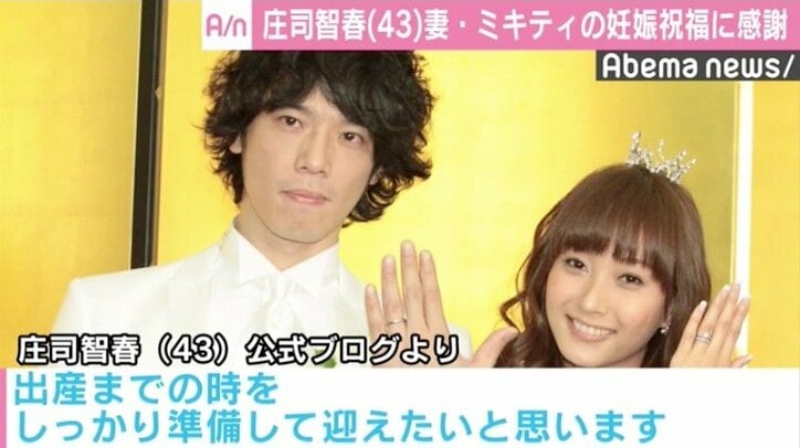 庄司智春が妻・藤本美貴の妊娠祝福に感謝、品川祐も「おめでとうミキティー お身体お大事にミキティー」 2019/10/28 11:00 拡大する お笑いコンビ、品川庄司の庄司智春(43)が6日、妻でタレントの藤本美貴(34)が、第3子を妊娠したことについて、ブログに感謝の思いをつづった。 「SNS等でお祝いのメッセージもたくさん頂いております。本当に感謝です。もうまさに、第三子が生まれたかの様な、『おめでとう!』とメッセージが、とても温かく皆さまの優しさに包まれています」とコメント。それから「夫婦の時間、そして2人の子供達との時間を大切に、出産までの時をしっかり準備して迎えたいと思います」と、現在の心境をつづっている。 続きを読む