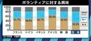 そもそも欧米各国ではボランティア活動が日常の中に浸透しているが、日本は遅れ気味。それどころか慈善活動や、社会貢献に対する"うがった見方"も後を絶たず、有名人がSNSなどに活動報告を投稿するだけで「偽善」や「売名行為」などと言われてしまうことも。実際、街で聞いてみると「過度にアピールするのはちょっと偽善なのかなって。やたらとボランティアしたことが良いことかのようにアピールする投稿は違うのかなって」「人のためにやるんだったら、自分のメリットは考えなくていいんじゃないかなと思う」「ボランティアをしている自分がかっこいいとか、自己実現的なことを思ってやっている人は多そう」と言った声が聞かれた。