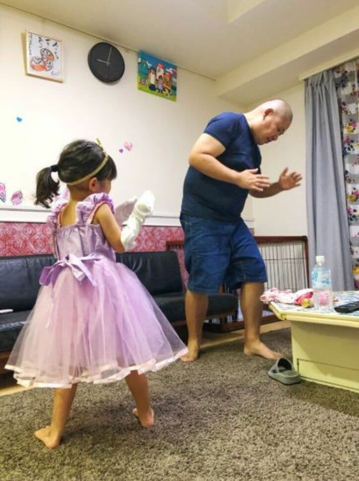 はんにゃ・川島の妻、娘が三瓶と踊るも「そのダンス、ちょっと違うんですよ~」 2019/10/04 18:53 拡大する お笑いコンビ・はんにゃの川島章良の妻・川島菜月さんが3日に自身のアメブロを更新。娘・きあちゃんがタレントの三瓶とダンスを踊ったエピソードをつづった。 この日、お昼寝をして夜に元気になったというきあちゃんは、手持ちのドレスを着用して急に踊りだしたと報告。最初にきあちゃんがダンス相手の王子様役に選んだのは夫・川島だといい、「ディズニーのような歌を歌いながらクルッと回って」「はい!ポーズ」と、紫のドレスを着てプリンセス気分で踊る様子を写真とともに公開した。 続きを読む