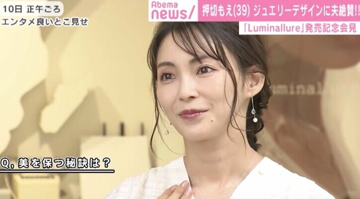 押切もえ(39)、変わらぬ美の秘訣はお味噌汁 2019/10/24 21:12 拡大する 押切もえ(39)が10日、初プロデュースしたジュエリーブランド「Luminallure(ルミナリュール)」の発売記念会見を開き、そこで美の秘訣について語った。 子どもの頃よりジュエリーに憧れを持っていたという押切は、「日本の材料と日本の職人さんの技術を使っているのがポイント。そこに私の今の気持ちと憧れを詰め込みました」と同ブランドについて説明。 39歳とは思えぬ美貌の押切。この日、「Luminallure」のアクセサリーを身につけ家を出た際には、夫である千葉ロッテマリーンズの涌井秀章選手(33)からも「綺麗だね」と声をかけてもらえたとのこと。 続きを読む