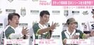 SMBC『日本シリーズ・e日本シリーズ』W協賛記念の前哨戦の記者発表会が17日都内で行われ、お笑いトリオ・ダチョウ倶楽部と、東京ヤクルトスワローズの山田哲人選手が登場した。