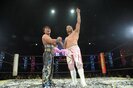 そしてフィニッシュは正調・青魔刀。最後までリングに立っていたのはHARASHIMAだった。“復活”の勝利と言っていいだろう。ただHARASHMA自身には衰えたつもりはないし、竹下の実力もすでに充分認めている。「若い者には負けられない」という気持ちはなかった。