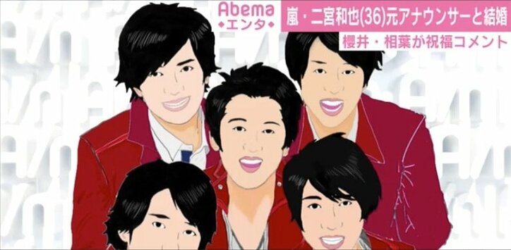 嵐・二宮和也が元アナウンサーと結婚 街の声「率直に寂しい」「トイレに行って泣きました」など反響様々 2019/11/13 11:30 拡大する 11月12日23時ごろ、人気グループ、嵐の二宮和也(36)が、ジャニーズ事務所を通じて、報道各社に結婚を発表した。 二宮は書面で「私二宮和也は、かねてよりお付き合いをさせていただいている方と結婚することになりましたのでご報告させて頂きます。結婚後も、これまでと変わらず活動してまいりますので、温かく見守って頂けましたらうれしく思います」とコメント。お相手は、かねてより交際が報じられてきた2歳年上の元フリーアナウンサーで、現在は芸能界を引退して一般人となっている。関係者によると、交際期間は5年で、11月12日に婚姻届を提出したとのこと。 続きを読む