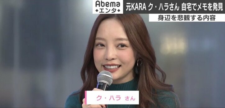 元KARAク・ハラさんの自宅で“身辺を悲観する”メモを発見 弔問場所では涙にむせぶファンも 2019/11/26 12:32 拡大する 11月24日に、韓国の自宅で死亡している状態で発見されたKARAの元メンバーで歌手のク・ハラさんについて、リビングのテーブルの上に身辺を悲観する内容のメモが見つかったことを、韓国メディアが報じた。 韓国警察の発表によると、自宅周辺の防犯カメラの映像を分析した結果、ハラさんは、11月24日の午前1時頃帰宅。その日の午後6時ごろ、家事手伝いをしている人物が亡くなっているハラさんを発見したという。ソウル市内にはハラさんの弔問場所が設けられ、涙にむせぶファンもいるなど、多くの人々が突然の訃報を悲しんだ。 続きを読む