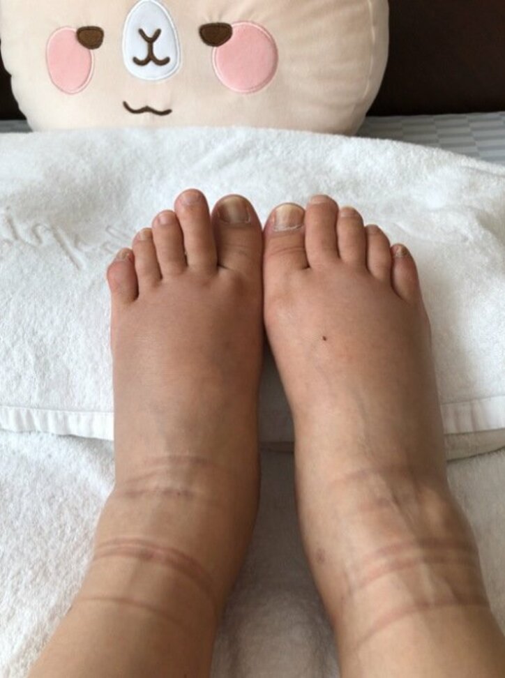 キンタロー。“クリームパン”のような足を公開「はやく浮腫対策しなくちゃあああ」 2020/02/03 19:03 拡大する お笑い芸人のキンタロー。が2日に更新した自身のアメブロで、“クリームパン”のようになった足を公開した。 この日、キンタロー。は「本日お昼頃の撮影 。。。いかがでしょうか?」「着圧ソックスの後もくっきり」とむくんだ自身の足の写真を公開し、「足がクリームパンの様になってきてしまいました」と報告。 続けて「パンパン具合で思わず脱いだら。。これです。。」と述べ「昨日は旦那が足元にクッションをいれてくれて足を高くして寝た」と明かすも「中々よくなりません」となかなか改善しない現状を説明した。 続きを読む