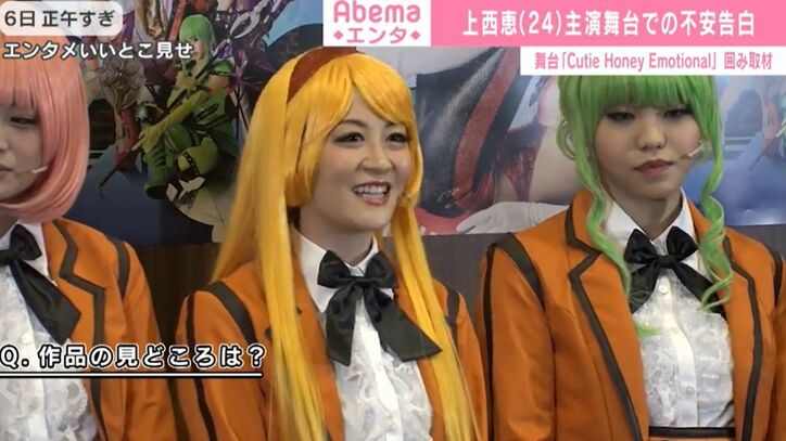 上西恵、キューティーハニー役に意気込み「ピュアさを大事に演じたい」 2020/02/07 11:42 拡大する 元NMB48の上西恵が6日、「Cutie Honey Emotional」の公開ゲネプロ&囲み取材を行い、意気込みを語った。 上西のほか、でんぱ組.incの鹿目凛、佐藤日向、ふわふわの平塚日菜、きゅい~ん'ズの西葉瑞希が出演している本舞台。主演を演じる上西は「ハニーちゃんはすごいセクシーなんですが、それプラス可愛さがあったり、ピュアさがすごく大事になってくるので、そのピュアな部分を楽しみに演じていきたい」とコメント、「最初はもともとあるキャラクターだから、どうしたら近づけるんだろうと悩んだりしました」と苦悩も明かした。 続きを読む