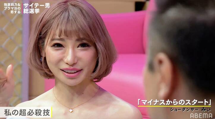 バーレスク東京No.1ダンサーが伝授 男を転がす必殺テクニック 指原莉乃&ブラマヨの恋するサイテー男総選挙 2020/04/16 14:13 拡大する 指原莉乃とお笑いコンビ・ブラックマヨネーズの小杉竜一、吉田敬がMCを務める『指原莉乃&ブラマヨの恋するサイテー男総選挙』#142(毎週火曜21時~)が14日、ABEMAにて放送。エンターテイメントショークラブ・バーレスク東京のNo.1ダンサーが、男を転がす必殺テクニックを披露して指原を深く納得させた。 トークテーマ「私の超必殺技」では、バーレスク東京のショーダンサー・みぃが「マイナスからのスタート」とフリップに記入。みぃは「好きな人が出来た時、普通は自分の良いところをアピールしがちだと思うけど、私は自分にできないことをズバズバ言います」と、まずはマイナスアピールをし、「そうするとマイナスからなので、行動とか言動が全部プラスになっていく」と説明した。例えば「あんまりマメに連絡しないタイプ」と最初に言いつつ、飲み会の後ですぐ「ありがとう、楽しかった」と連絡。そうするとギャップ萌えを演出できると語った。 続きを読む