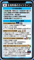 検査に次ぐ検査と陽性者の隔離措置、アプリなどを使った感染者の行動監視を実施、3月末からは社会的な距離を保つ措置も導入し、感染拡大防止に力を入れてきた韓国。その甲斐あってか、新たな感染者数は日に日に減少、4月末にはついにゼロになった。そして6日からは、日常生活と経済活動とのバランスを考慮した“生活防疫”に移行。31の項目からなるガイドラインをベースに、制限緩和の動きが始まっている。