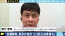 「狂牛病の時や新型インフルエンザの時の騒動を思い出す。僕たち専門家がリスクはほとんどないと言っても、アメリカ産の牛肉は怖いという世中の雰囲気に国が動かされ、アメリカ産の牛肉を止めたり、全頭検査をしたりした。今回も、同じことをやっているなと思って見ている。やはり、上に立っている人たちは、何かあった時に言われるのではないかと怖れているのではないか。とにかく原理原則を分かっていただいて、話したければマスクをして。食べる時にはなるべく黙って食べる。黙らなくても、小声で話す。換気をする。手をこまめに洗う、あるいは濡れティッシュでこすりつける。目・鼻・口を触らない。そのようにして、とにかくストレスなくいきましょうということだ」。(ABEMA/『ABEMA Prime』より)