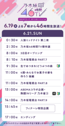 ABEMAにて、6月19日の19時から6月21日17時までの46時間にわたって放送することが決定している特別番組『乃木坂46時間TV アベマ独占放送「はなれてたって、ぼくらはいっしょ!」』(以下、『乃木坂46時間TV』)のタイムテーブルが発表された。