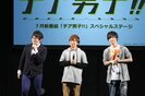 続いて坂東晴希役の米内佑希さん、橋本一馬役の岡本信彦さん、徳川翔役の小野友樹さんが登壇し、大きな拍手で迎えられた。坂東晴希を演じる米内さんは今作が初の主役。小野さん演じる徳川翔は唯一チアの経験者で、彼が物語のキーマンとなるようだ。