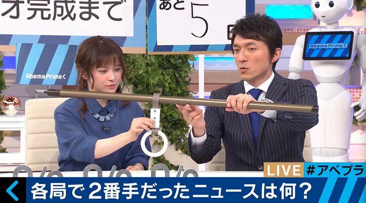 地下鉄で「つり革を引きちぎる」事件発生 もっとある電車内での迷惑行為 2016/04/21 02:55 拡大する 20日、「AbemaTV」のメインニュース番組「AbemaPrime」が夜8時からオンエアされた。水曜日の担当MCは、タレント・宮澤エマがつとめ、プライムキャスター・小松靖アナ(テレビ朝日)とタレント・池田光咲、さらに水曜コメンテーターとして、BuzzFeed Japan創刊編集長の古田大輔氏と、お笑い芸人・セクシーチョコレートのREINAが登場した。ニュースコーナーでは、16日に東京メトロ・千代田線のつり革をねじり引きちぎった事件がとりあげられた。スタジオではナイロン製のつり革が用意され、REINA氏は「(引きちぎるのは)無理ですよ」とし、宮澤は「ものすごい心理状態ですよね」と驚きをみせた。 続きを読む