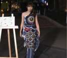 穂川が着用した「鯉のぼり」は、本物の鯉のぼりを加工したもの。人魚のように鯉のぼりのなかにすっぽり入り、片方の肩を出した格好の穂川には、コメント欄も大賑わい。