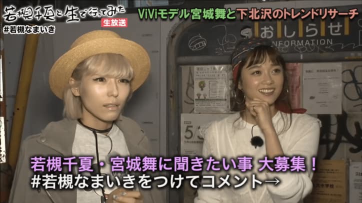 パリコレモデル・宮城舞、素顔はおっさん 「家の中に雀卓を置くのが夢」 2019/03/15 09:36 拡大する https://www.youtube.com/watch?v=kd-_9N2GvLs11日、『若槻千夏と生で行ってみた』の第5回が放送された。今回のゲストは雑誌ViViなどで活躍し、2015年にはパリコレデビューも果たしたモデル・宮城舞(28)。以前放送した第3回ゲストの今井華(23)は、宮城の実弟・大樹(26)の元恋人である。舞台は若者に人気の街・下北沢。Twitterを通じ、約32万人を超える宮城のフォロワーに向けて番組のPRを目論む若槻だが、番組のハッシュタグが「#若槻なまいき」になったことを知らされ、「なんですか?急に」と動揺。その理由をスタッフに尋ねると、番組タイトルの『若槻千夏と生で行ってみた』の略だと知らされ、「そこかな?略すの。下手だな~」と番組の運営に不満をぶつけた。 続きを読む