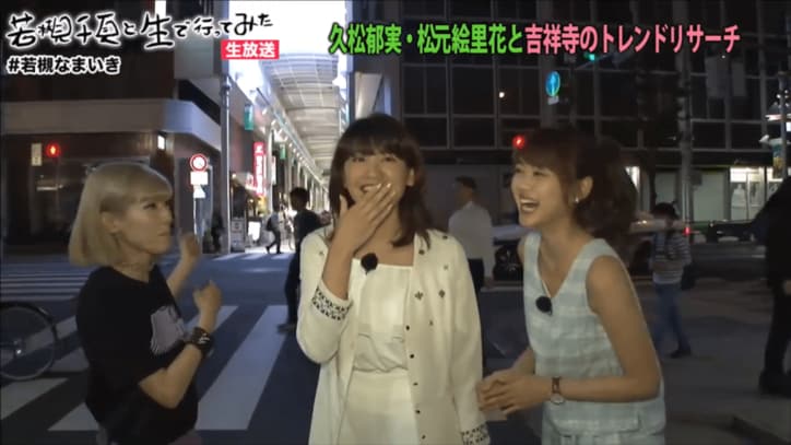 若槻千夏がグラドル・久松郁実らにアドバイス 「事務所に隠れて恋愛したら?」 2019/03/15 09:36 拡大する 18日、若槻千夏(31)がMCを務める『若槻千夏の生で行ってみた』第6回が放送された。今回の舞台は吉祥寺。ゲストにはCanCam専属モデルのほかグラビアでも活躍し、和製ケイト・アンプトンと呼ばれる久松郁実(20)と、Rayの専属モデルでハーフマラソンの完走経験もある松元絵里花(20)が登場した。「同じ事務所で年も同じ」という2人は「めっちゃ仲良しです」と若槻にアピールした。トレンドを探るべく、3人は原宿にも大きな店舗を持つ古着店「CHICAGO」や、カフェも兼ねたチョコレートの専門店「リンツ ショコラカフェ」など気になるお店を次々と巡って行く。 続きを読む