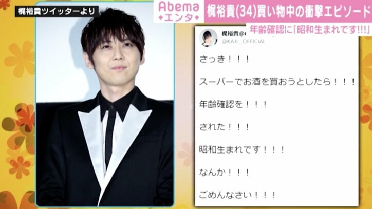 梶裕貴、スーパーで起きた驚きエピソード明かす「昭和生まれです!!!」 2020/07/30 13:15 拡大する 声優の梶裕貴(34)が29日、Twitterを更新し、スーパーで買い物した際に起こった驚きのエピソードを明かした。 「さっき!!」と焦る様子で切り出した梶は、「スーパーでお酒を買おうとしたら!年齢確認を!された!昭和生まれです!なんか!ごめんなさい!」と、未成年に間違えられたことを報告。その後の投稿で、帽子とマスクでほとんど顔が見えず、半袖に短パンというラフな格好であったことも明かし、「『失礼しました !』と店員さんに言われましたが......こちらこそ、失礼しました... 」と、綴った。 続きを読む