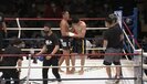 両者とも序盤からアグレッシブにパンチを繰り出していく。松本のパンチに動きが止まる場面もあった鈴木だが、そこからしっかりと打ち返し互角の展開だ。鈴木は蹴りを得意とする選手なのだが、パンチの間合いに持ち込んだのは松本の作戦だったか。