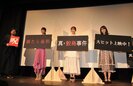 11月27日、ホラー映画『真・鮫島事件』の初日舞台挨拶が池袋シネマ・ロサで行われ、同作の主演を務めた武田玲奈、共演の鶴見萌、本作の主題歌『ツグム。』を歌っている虹のコンキスタドール 清水理子、そしてメガホンを取った永江二朗監督が登壇した。