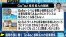 見ていただければ分かる通り、青色で示した感染者数の“第一波”が収まった後、オレンジ色で示した宿泊施設の稼働指数が伸びていった。その後、感染者数が再び増加してはいるが、この傾向はGoToトラベルが始まる前からのものだということがわかる。そして、それに併せて伸びなくなった稼働指数は、感染者数が落ち着くと再び右肩上がりになった。右端にあたる直近の部分では感染者数は増えてきてはいるが、基本的には感染者数は低いまま続いてきた」。