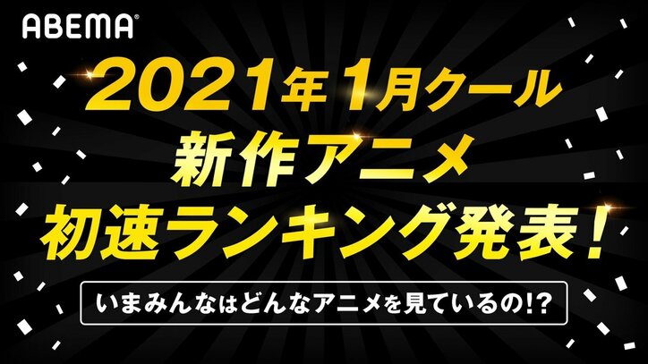 2021年冬アニメの「ABEMA初速」を発表!『リゼロ』『のんのん』『ゆるキャン』など人気作揃い 2021/01/26 17:07 拡大する テレビ&ビデオエンターテインメント「ABEMA」は、2021年1月より放送されている新作アニメの「初速ランキング」上位5作品を発表した。 「ABEMAアニメチャンネル」は“初速”ランキングとして2021年1月より配信しているアニメ作品の、第1話の初回配信および「ABEMAビデオ」での見逃し視聴を合計した累計視聴数、および第1話の初回配信のコメント数を独自に集計。 各ランキングの上位5作品は以下のとおり。 続きを読む 2025秋アニメ(10月クール) 作品情報 もっとみる(74) 野原ひろし 昼メシの流儀 私を喰べたい、ひとでなし キミと越えて恋になる かくりよの宿飯 弐 終末のワルキューレ 3期 矢野くんの普通の日々