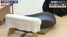 “巣作り”はまだまだ終わらない。今度取り出したのはスポーツタオル。おもむろに、自分の左側にある脇息(きょうそく)にかぶせると、細い紐状のものでリボン結びで留め始めた。