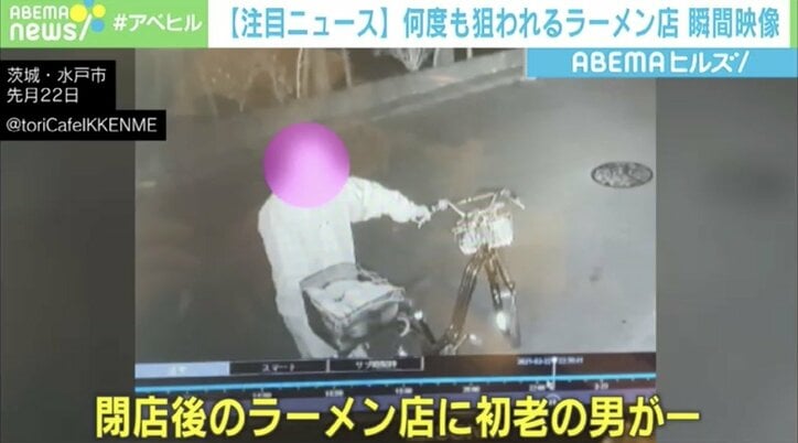 同じラーメン店を何度も…相次ぐ窃盗にオーナーが激怒「悔しいを通り越した」 ABEMAヒルズ 2021/03/19 17:46 拡大する 茨城県にあるラーメン店オーナーが、店先のポリタンクや事務所の植木鉢を窃盗され、被害を訴えている。 先月22日、閉店後のラーメン店に初老の男が自転車でやって来た。かごから手袋を取り出してはめると、店先に置いてあるポリタンクを物色し始める。そして、その中のひとつをおもむろにつかむと、自転車に戻り、かごの中に入れる。“ポリタンク窃盗”の瞬間だ。【映像】ポリタンクを自転車のかごに入れる瞬間(冒頭~) 実は、この男、以前にここのラーメン店である騒ぎを起こしていた。被害にあったラーメン店のオーナーは「何回か食べに来ていた客だった。一回、無銭飲食されそうになったときもあった。夜になるとベロベロに(酔っぱらって)自転車で動いたりしている」と明かす。 続きを読む