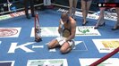 何とか立ち上がろうとするが、足下はふらふら、さらに目が泳いでいる危険な様子。辛うじて立ち上がったが、足元がおぼつかず崩れ落ちるK-Jeeをレフェリーが支えながら、続行不可能のジェスチャーで試合をストップした。