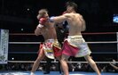 序盤はカーフキックから。リーチの長いレオナ相手に、武尊は打ち合いを避けて“削る”作戦だったという。だが気づけば展開は打ち合いに。レオナのパンチをもらうとすかさず前進し、パンチを振るう。その顔には笑みが浮かんでいる。