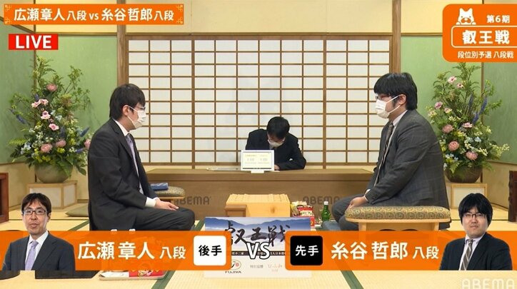 広瀬章人八段 対 糸谷哲郎八段 A級棋士が激突 勝者は午後7時から藤井聡太王位・棋聖と決勝/将棋・叡王戦 将棋 2021/04/09 14:02 拡大する 将棋の叡王戦段位別予選(八段戦)が4月9日に行われ、広瀬章人八段(34)と糸谷哲郎八段(32)が午後2時から対局を開始した。勝者は午後7時から、本戦出場をかけた決勝で、藤井聡太王位・棋聖(18)と対戦する。【中継】叡王戦予選 広瀬八段-糸谷八段 広瀬八段は、2005年4月に四段昇段。竜王戦2組(1組以上:3期)、順位戦A級(A級:7期)。タイトルは竜王、王位でそれぞれ1期の計2期獲得。棋戦優勝は若手棋戦の新人王戦で1回。安定した戦いぶりで常に各棋戦の上位で戦うトップ棋士の一人だ。 続きを読む