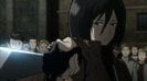 巨人の襲撃に遭い、住人たちが急いで避難しようとする中、大量の荷物を持ち出そうとして道をふさぐ権力者の一行がいました。一刻の猶予も許されない状況、もちろんミカサは彼らを退けようとします。「オレはこの街の商会のボスだぞ!?」と相手に脅されると、ミカサは心底不思議そうに「死体がどうやって喋るの?」と答えたのでした。つまり、ミカサは殺す気満々ということ。なんとも恐ろしいヒロインです。