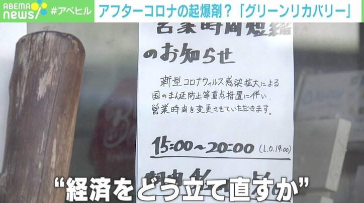 「環境対策をより前に進めた形で経済回復することが重要」 アフターコロナの合言葉「グリーンリカバリー」 ABEMAヒルズ 2021/05/19 12:21 拡大する 長引くコロナ禍で、疲弊していく経済。感染拡大防止とともに、その経済をどう立て直すかが今後の大きな課題として立ちはだかっている。【映像】アフターコロナの合言葉「グリーンリカバリー」とは 世界的なテーマとなっているコロナ禍からの復興で、カギになるとされているのが、近年何かと話題になっている「環境」。いったいどういうことなのか、環境問題に取り組む企業や団体などが集まり発足し、政府に対する提言や意見も行う気候変動イニシアティブ(JCI)の田中健氏に聞いた。 続きを読む