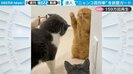マンチカンのウニちゃんにゆっくりと近づいたエキゾチックショートヘアのロックくんが突如、ウニちゃんに左の猫パンチを数発繰り出すと、「ンッ」と短い声を発したウニちゃんが立ち上がって猛反撃を開始。