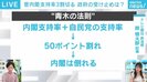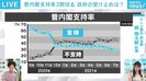 今回の結果について、テレビ朝日政治部の原慎太郎記者は「内閣支持率が3割を切ると、いわゆる“危険水域”にあると言われている。調査方法が変更されているため単純比較はできないが、前回3割を割ったのは森友学園問題に関する財務省の決裁文書改ざん問題で安倍政権が揺れていた2018年4月以来で、菅政権としては初めて3割を割り込む結果に、永田町には衝撃が走っている。一方で、政権の安定度を図る指標としては“参院のドン”と呼ばれた自民党の青木幹雄元官房長官が唱えた“青木の法則”という経験則がある。これは内閣支持率と与党第1党の支持率の合計が50ポイントを割ると内閣は倒れるというものだが、現状では自民党の支持率が42.3%あり、合計は71.9ポイントと、50ポイントまでにはまだ少し余裕がある」と話す。