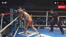 オーソドックスな河北に対してサウスポーの雄大。序盤は河北が前に出てロー、ミドルとキックを飛ばす。雄大も下がりながら右フック、ロープを背負いながらもパンチが伸びる。