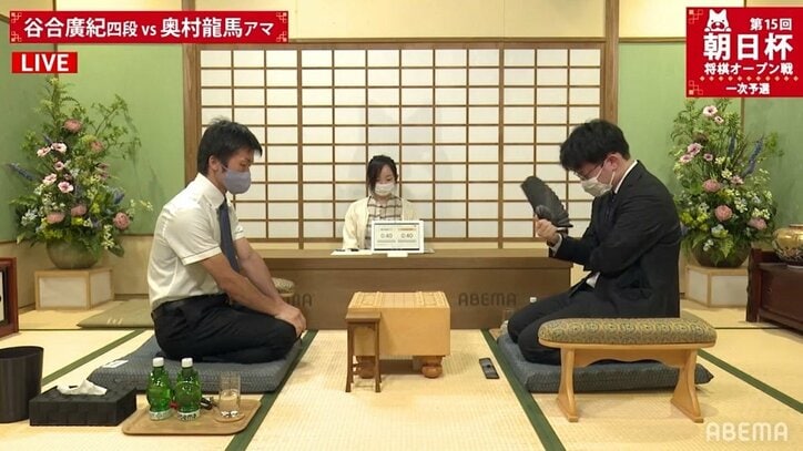 谷合廣紀四段 対 奥村龍馬アマ 対局開始 勝者は午後2時からもう一局/将棋・朝日杯 2021/08/05 16:53 拡大する 将棋の朝日杯将棋オープン戦の一次予選が8月5日に行われ、谷合廣紀四段(27)と奥村龍馬アマが午前10時から対局を開始した。勝者は午後2時から、杉本和陽五段(29)と対戦する。【中継】朝日杯 谷合四段-奥村アマ 谷合四段は、2020年4月に四段昇段。竜王戦6組、順位戦C級2組。東京大学の大学院に在籍中で、今年5月には自作の将棋AIも公開した。奥村アマは、朝日アマ将棋名人戦の第3位に入り、出場権を獲得した。 続きを読む