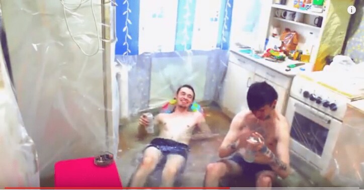 【おバカ映像】自宅キッチンをプールにしてみた 意味不明すぎるチャレンジが話題に 2019/03/15 09:36 拡大する なんと自宅のキッチンをプールにしてしまったロシアの若者2人組のおバカ映像が話題だ。生活感あふれるキッチンに水を流し込み、プールにしようと思いついた2人。床や壁、シンクなど、とにかく全てをビニールで覆い、継ぎ目もボンドやテープでしっかりと防水する。この作業に4時間をかけたそうで、思いつきのイタズラにしては気合が入っている。さらに、泳げるようになるまで水を流し込むのに3時間かかったというから、もはや半日がかりの大仕事だ。 続きを読む