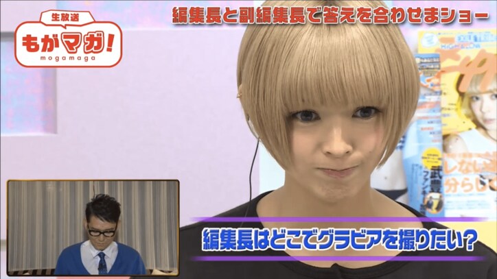 最上もが、番組進行が上手く行いかずネガティブ発言連発 「もうやだ!」「顔を見ないで」 2019/03/15 09:36 拡大する アイドルグループ・でんぱ組.incの最上もがが、7月4日に放送されたAbema TV『もがマガ!』内の企画で、ネガティブ発言を連発した。同番組は、最上が編集長となり、新しいタイプの雑誌「もがマガ」を作るというもの。副編集長として、お笑いコンビのナイツ・土屋伸之を副編集長に据え、毎回様々なゲストを呼び、雑誌作りに必要な知識を得ていく。今回、土屋は仕事で福岡滞在中のため、スタジオにいる最上と中継しながら番組が進行。最初のトークテーマが企画会議のはずだったが、現場にいない土屋へのサプライズ企画として『土屋副編集長はもがマガを愛しているのか!?』と題し、過去の放送で起こった出来事を二人で解答。すでに十数回の放送を重ねているため、意思疎通も出来ているかと思いきや、「最上が一番実現したい企画は?」「最上が一番驚いたことは?」の質問に相次いで異なる解答をするなど、どうやら不穏なムード。 続きを読む